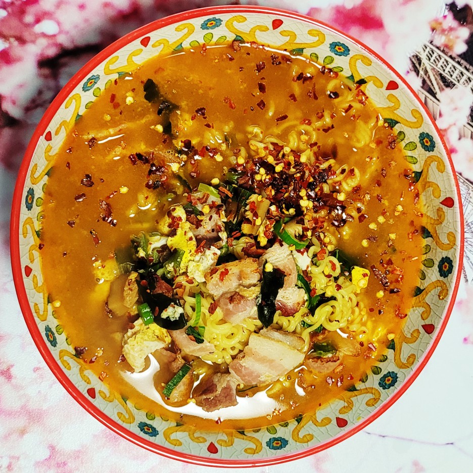 일단 냉장고를 털어 만든 베이컨 해장라면