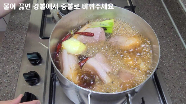 물이 부글부글 끓면 강붕에서 중불로 바꾸고 다시 뚜껑을 덮어주세요