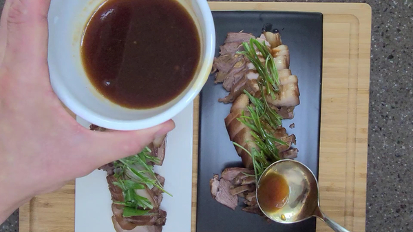 소스를 고기위로 뿌려주면
