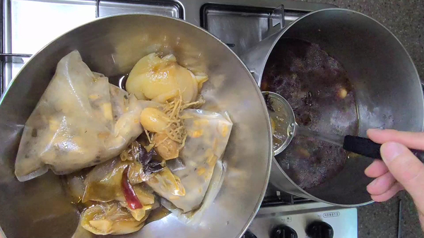 [양조간장 한컵 + 설탕 한컵 + 후추 반스푼 + 마늘8개 + 건고추8개 + 손질된 파 + 손질된 양파 + 팔각3개 + 파뿌리(이건 없어도 무관해요)]