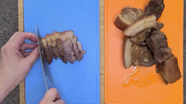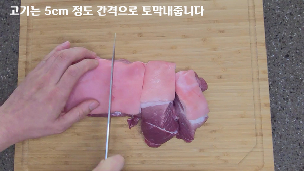 먼저 돼지고기를 5cm 정도 두께로 토막을 냅니다.